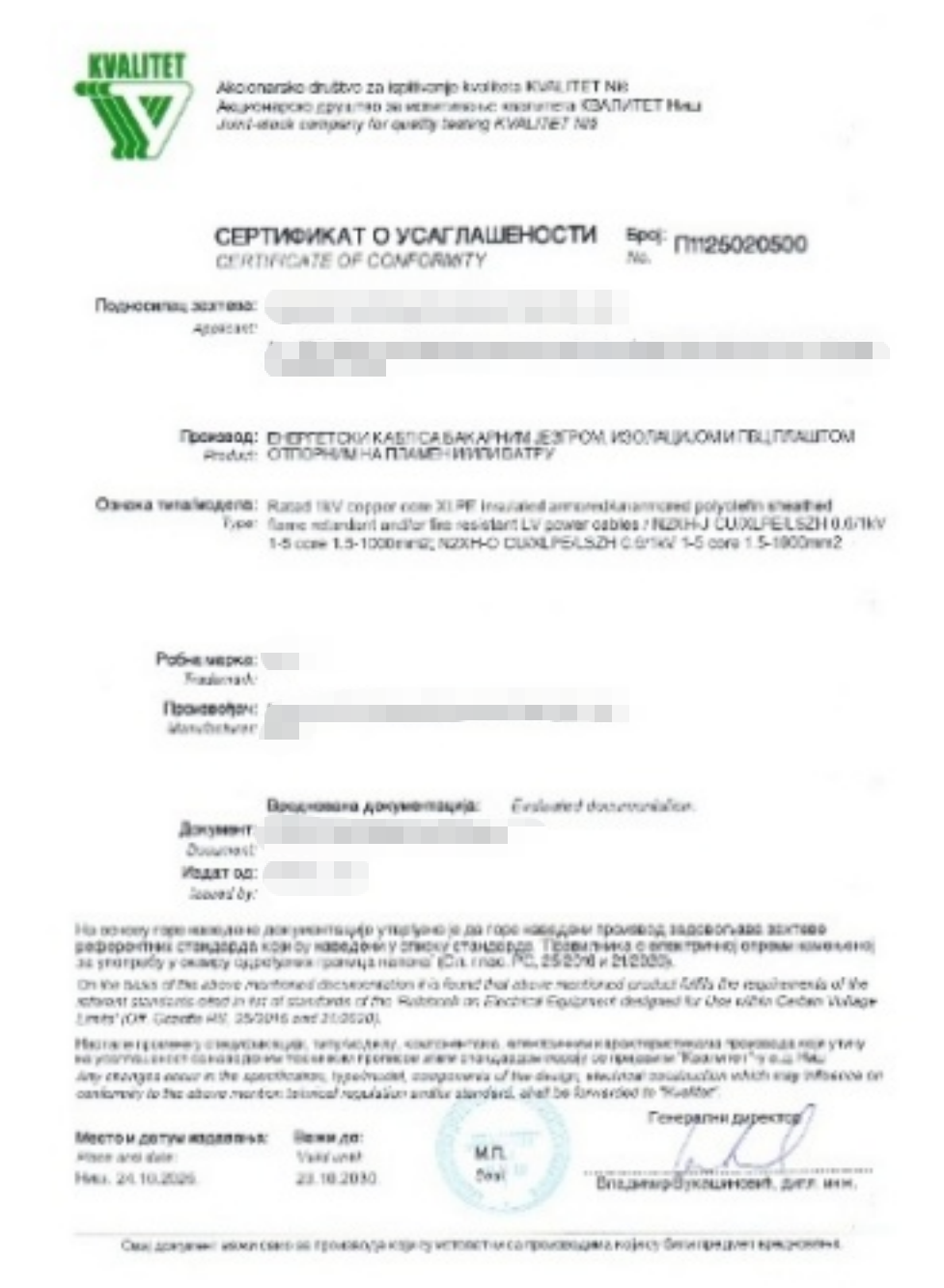 近期,我们已成功协助客户完成电缆产品的塞尔维亚AAA认证,顺利取得官方符合性证书,助力其产品快速合规进入塞尔维亚市场。